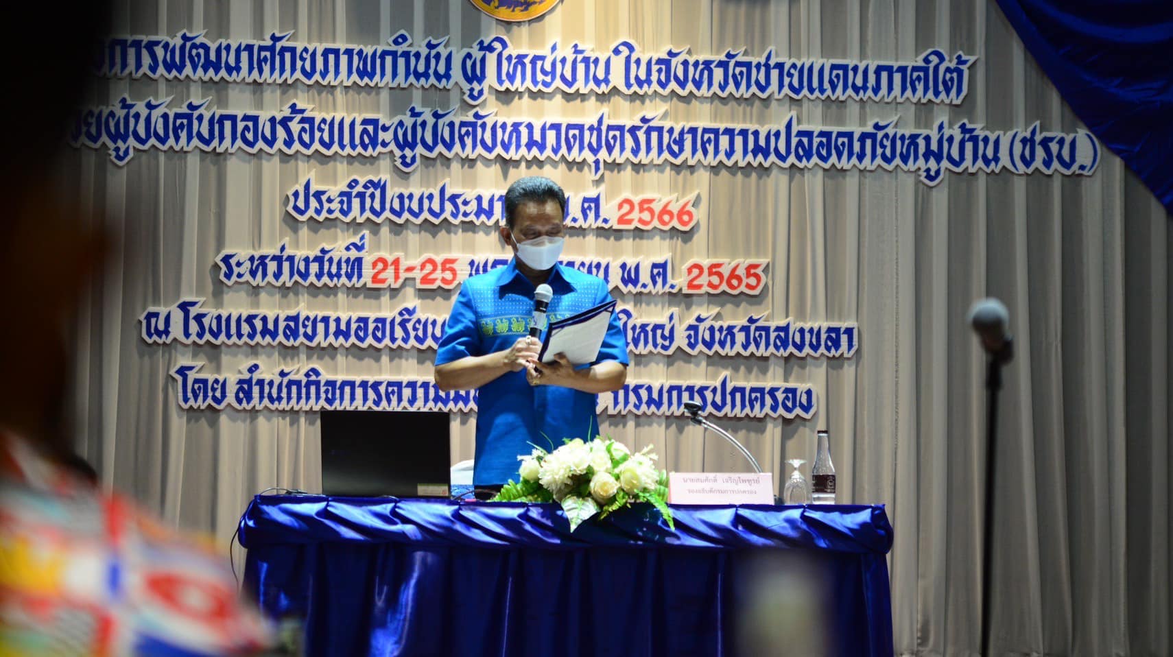 รองอธิบดีกรมการปกครอง เปิดโครงการพัฒนาศักยภาพกำนัน ผู้ใหญ่บ้าน ในจังหวัดชายแดนภาคใต้ หลักสูตร ผู้ช่วยผู้บังคับกองร้อยและผู้บังคับหมวดชุดรักษาความปลอดภัยหมู่บ้าน (ชรบ.) ประจำปีงบประมาณ พ.ศ. 2566