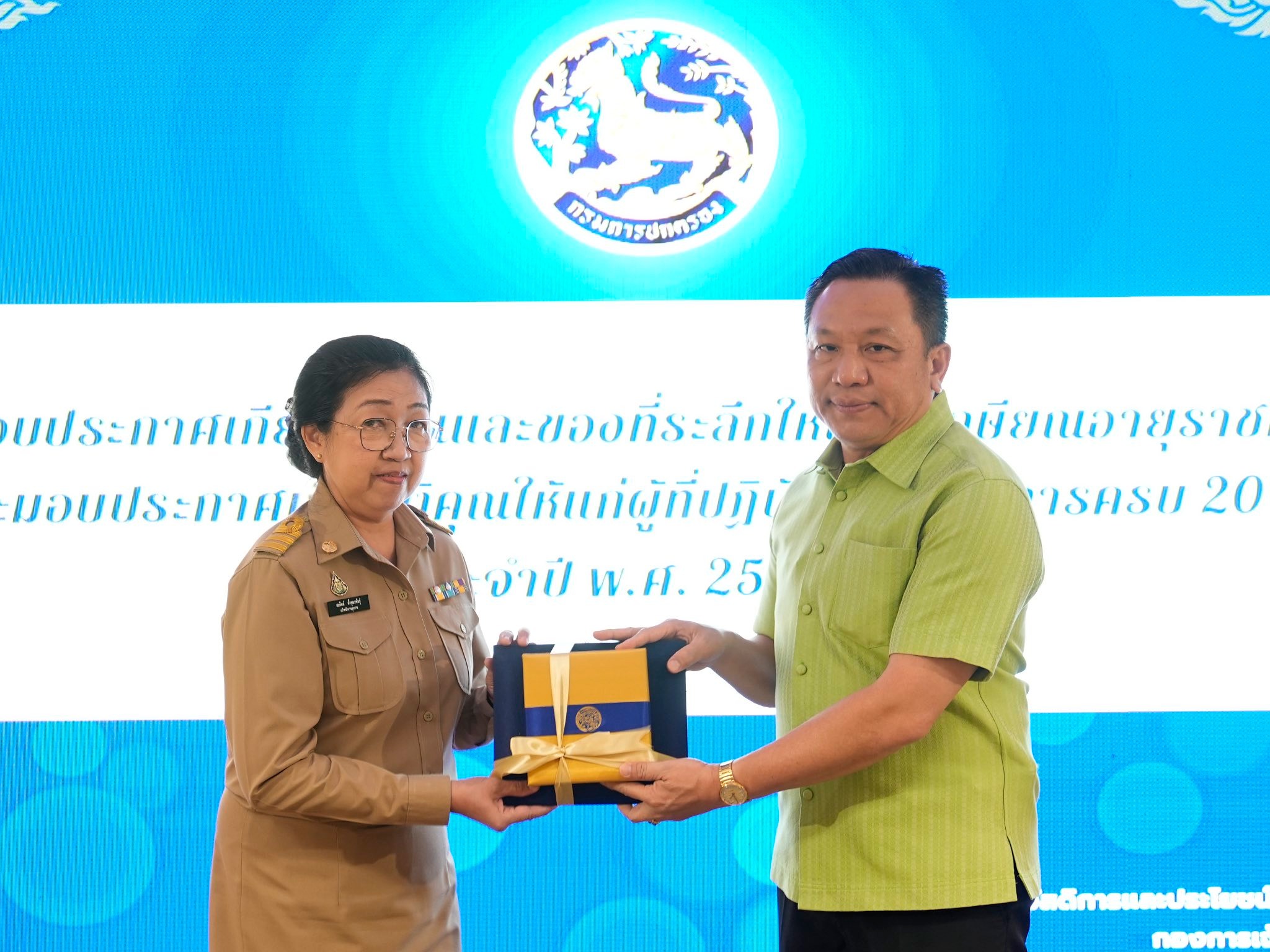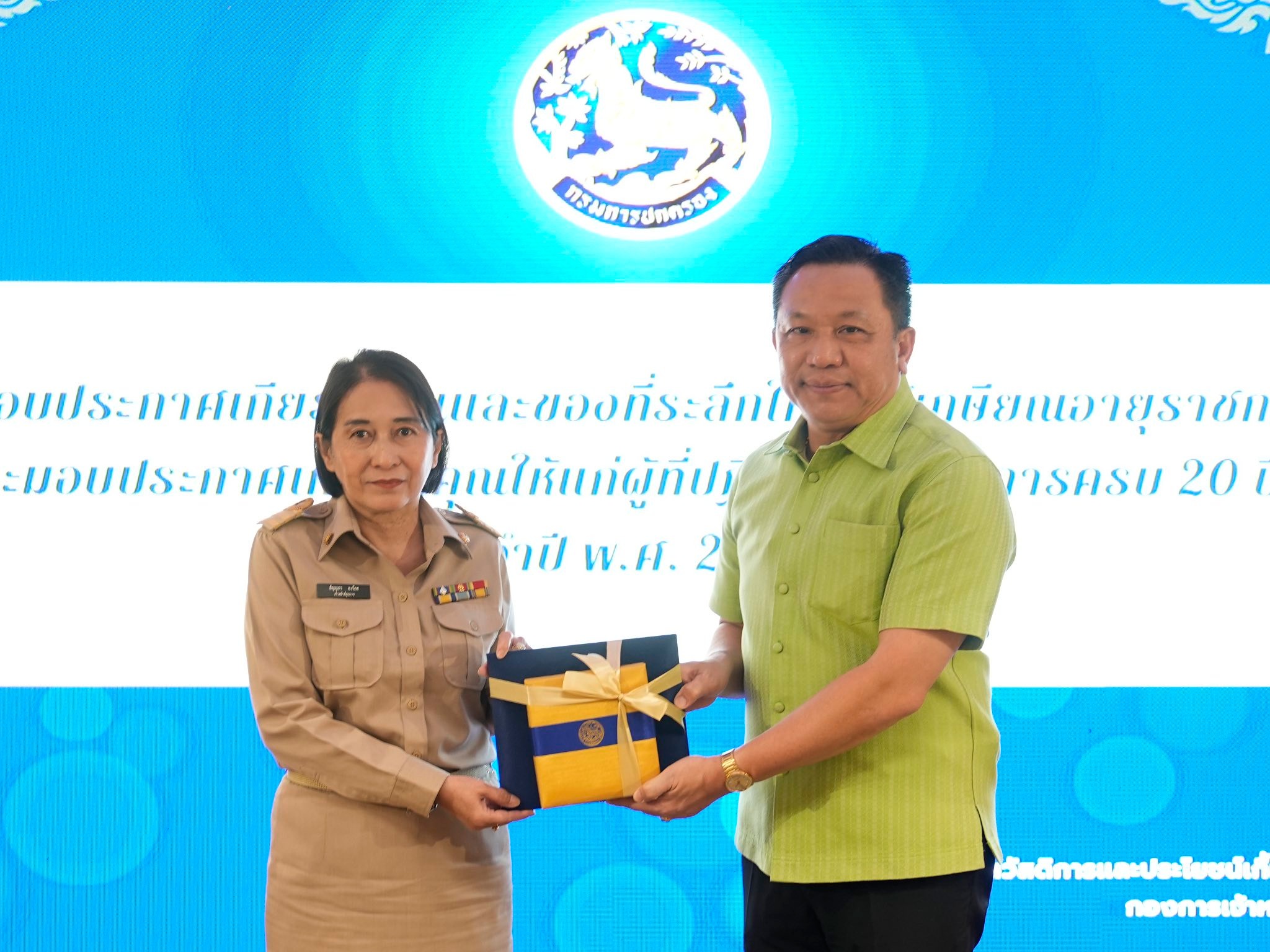 อธิบดีกรมการปกครอง มอบประกาศเกียรติคุณและของที่ระลึกให้แก่ผู้เกษียณอายุราชการ และผู้ที่ปฏิบัติงานราชการครบ 20 ปี ประจำปี พ.ศ. 2568
