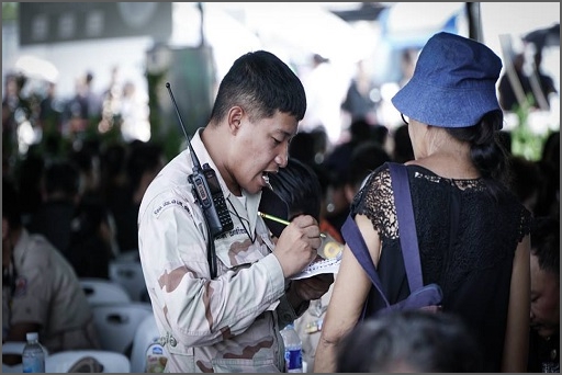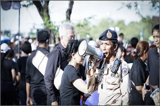 ด้าน นายหมวดเอก เพิ่มศักดิ์ ศรีสวัสดิ์ ผู้บังคับกองร้อยปฎิบัติการพิเศษ ที่ 1 กองบัญชาการกองอาสารักษาดินแดน ทำหน้าที่นำกำลังอาสารักษาดินแดน (อส.) มารักษาความสงบเรียบร้อย อำนวยความสะดวกและช่วยเหลือประชาชน ที่บริเวณสนามหลวง เปิดเผยว่า วันนี้มีประชาชนเดินทางเข้ามาน้อมเกล้าฯ ถวายความอาลัยแด่พระบาทสมเด็จพระปรมินทรมหาภูมิพลอดุลยเดช มากกว่าทุกวัน กรมการปกครอง โดยสำนักอำนวยการกองอาสารักษาดินแดน ได้นำกำลัง อส. จำนวน 50 นาย ประจำตามจุดต่างๆ ทั่วบริเวณสนามสนามหลวง เฉพาะวันนี้ สามารถช่วยเหลือติดตาม เด็กที่พลัดหลงจากผู้ปกครองแล้ว กว่า 50 ราย ซึ่งส่วนใหญ่เดินทางมากับผู้ปกครอง เมื่อมาถึงบริเวณงาน เจอผู้คนเป็นจำนวนมากแล้วเกิดพลัดหลงกัน