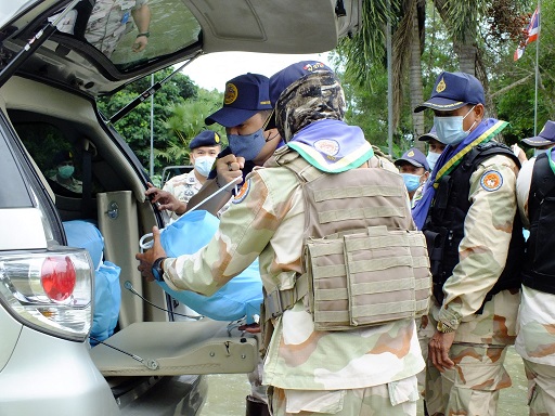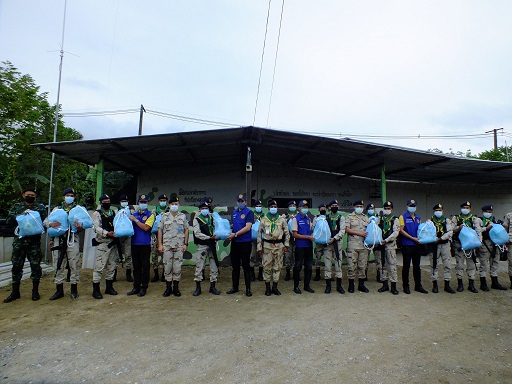 วันที่ 11 มกราคม 2564 นายกองเอกธนาคม จงจิระ หัวหน้าฝ่ายอำนวยการกองบัญชาการกองอาสารักษาดินแดน/อธิบดีกรมการปกครอง มอบหมายให้สำนักอำนวยการกองอาสารักษาดินแดน โดย นายปารเมศ เห้งสวัสดิ์ ผู้อำนวยการส่วนปฏิบัติการจังหวัดชายแดนใต้ ให้นำชุดบำรุงขวัญมูลนิธิอาสารักษาดินแดน ในพระบรมราชินูปถัมภ์ ให้แก่สมาชิกกองอาสารักษาดินแดนที่ปฏิบัติหน้าที่ประจำชุดคุ้มครองตำบล (ชคต.) ในพื้นที่จังหวัดชายแดนภาคใต้ที่ประสบเหตุอุทกภัยและวาตภัย พร้อมมอบขวัญกำลังใจและความห่วงใย ให้แก่ ฐานปฏิบัติการ อส. พระยาเมือง เขตเมืองปัตตานี ฐานปฏิบัติการ ชคต.ดอนรัก อำเภอหนองจิก ฐานปฏิบัติการ ชคต.ปะกาฮะรัง อำเภอเมืองปัตตานี ฐานปฏิบัติการ ชคต.ม่วงเตี้ย อำเภอแม่ลาน ฐานปฏิบัติการ ชคต.ท่าสาป อำเภอเมืองยะลา ฐานปฏิบัติการ ชคต.ยะหา