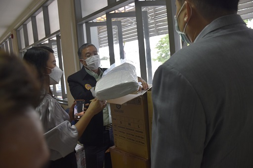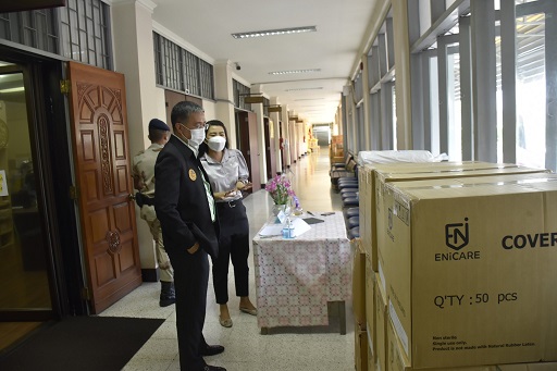 นายธนาคม จงจิระ อธิบดีกรมการปกครอง รับมอบชุด PPE และหน้ากากอนามัยทางการแพทย์