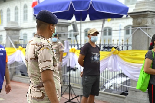 ทั้งนี้ กรมการปกครอง ได้จัดกำลังสมาชิกกองอาสารักษาดินแดนปฏิบัติหน้าที่อำนวยความสะดวกแก่ประชาชนและกำกับดูแลแถวให้เว้นระยะห่างทางสังคม (Social Distancing) วัดอุณหภูมิ และล้างมือด้วยแอลกอฮอล์ ให้เป็นไปตามมาตรการกระทรวงสาธารณสุขกำหนดอย่างเคร่งครัด