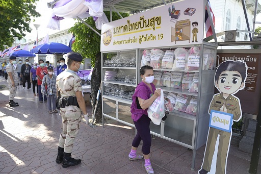 โดย กรมการปกครอง ได้จัดเจ้าหน้าที่ สมาชิกกองอาสารักษาดินแดน กำกับดูแลและอำนวยความสะดวกให้เว้นระยะห่างทางสังคม (Social Distancing) วัดอุณหภูมิ และล้างมือด้วยแอลกอฮอล์ก่อนรับสิ่งของทุกครั้ง เพื่อเป็นไปตามมาตรการกระทรวงสาธารณสุขกำหนดอย่างเคร่งครัด