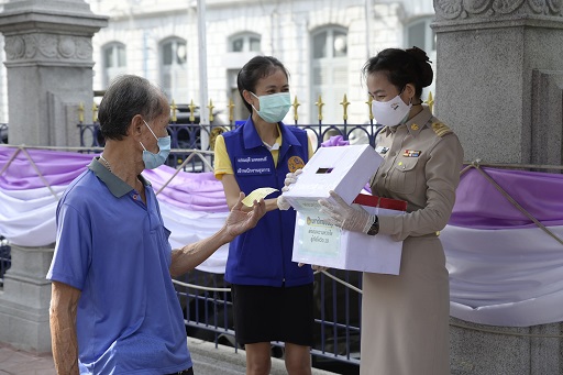 โดย กรมการปกครอง ได้จัดเจ้าหน้าที่ สมาชิกกองอาสารักษาดินแดน กำกับดูแลและอำนวยความสะดวกให้เว้นระยะห่างทางสังคม (Social Distancing) วัดอุณหภูมิ และล้างมือด้วยแอลกอฮอล์ก่อนรับสิ่งของทุกครั้ง เพื่อเป็นไปตามมาตรการกระทรวงสาธารณสุขกำหนดอย่างเคร่งครัด