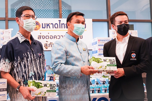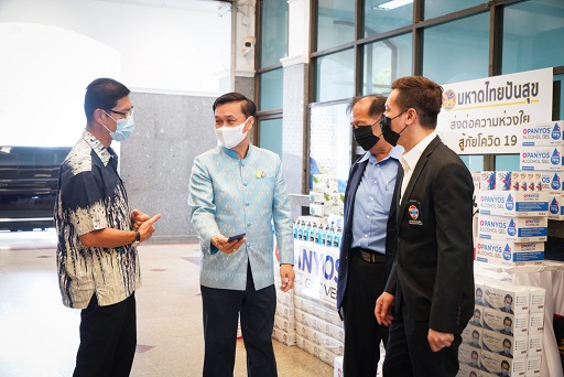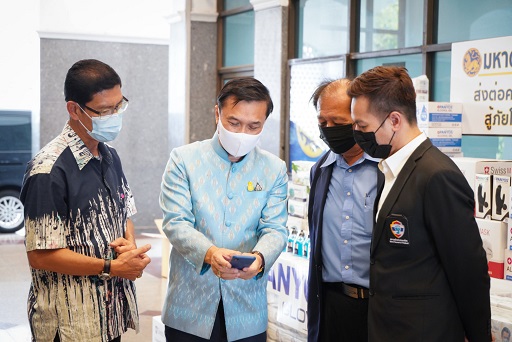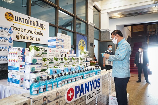 และในเวลา 15.45 น. ณ ศาลาว่าการกระทรวงมหาดไทย นายทรงศักดิ์ ทองศรี รัฐมนตรีช่วยว่าการกระทรวงมหาดไทย พร้อมด้วยนายศักดิ์ฤทธิ์ สลักคำ รองอธิบดีกรมการปกครอง รับมอบเจลแอลกอฮอล์ หน้ากากอนามัย ถุงมืออนามัย เพื่อสนับสนุนกิจกรรม “มหาดไทยปันสุข ส่งต่อความห่วงใย สู้ภัยโควิด 19” แจกจ่ายให้กับบุคลากรและประชาชนทั่วไป สำหรับใช้ทำความสะอาดและป้องกันโควิด-19