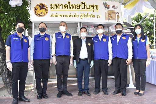 วันที่ 1 กรกฏาคม 2564 เวลา 08.30 น. ณ บริเวณหน้ากระทรวงมหาดไทย นายอรรษิษฐ์ สัมพันธรัตน์ รองปลัดกระทรวงมหาดไทย ร้อยเอกจักเรศ พิทยาคม ผู้อำนวยการสำนักกิจการความมั่นคงภายใน พร้อมข้าราชการ และเจ้าหน้าที่ ร่วมกิจกรรม “มหาดไทยปันสุข ส่งต่อความห่วงใย สู้ภัยโควิด 19” แจกจ่ายสิ่งของเครื่องใช้ อุปโภคบริโภค พร้อมอุดหนุนอาหารพร้อมรับประทานจากร้านค้าบริเวณรอบกระทรวงมหาดไทย แจกจ่ายให้แก่ ผู้ยากไร้ คนยากจน คนไร้ที่พึ่ง และผู้ได้รับความเดือดร้อนจากโควิด-19 กลุ่มเป้าหมายในวันนี้จากชุมชนราชบพิธพัฒนา