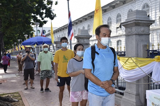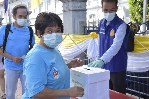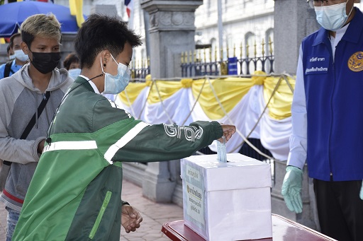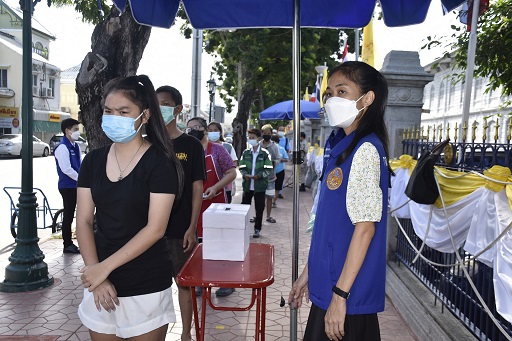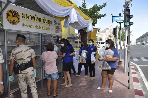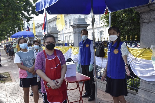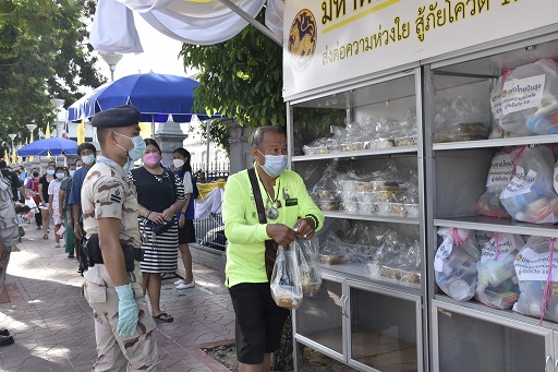 โดย กรมการปกครอง ได้จัดกำลังสมาชิกกองอาสารักษาดินแดนปฏิบัติหน้าที่อำนวยความสะดวกแก่ประชาชนและกำกับดูแลแถวตามมาตรการ “DMHT ป้องกันโควิด - 19” Distancing เว้นระยะห่างทางสังคม Mask wearing สวมหน้ากาก Hand washing ล้างมือด้วยเจลแอลกอฮอล์ และ Testing ตรวจวัดอุณหภูมิก่อนรับของ เพื่อเป็นไปตามมาตรการกระทรวงสาธารณสุขกำหนดอย่างเคร่งครัด