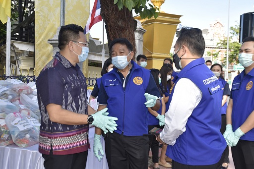 วันที่ 2 กรกฏาคม 2564 เวลา 08.30 น. ณ บริเวณหน้ากระทรวงมหาดไทย นายนิรัตน์ พงษ์สิทธิถาวร รองปลัดกระทรวงมหาดไทย นายสันติ ชูศรี ผู้อำนวยการกองการเจ้าหน้าที่ กรมการปกครอง พร้อมข้าราชการ และเจ้าหน้าที่ ร่วมกิจกรรม “มหาดไทยปันสุข ส่งต่อความห่วงใย สู้ภัยโควิด 19” แจกจ่ายสิ่งของเครื่องใช้ อุปโภคบริโภค พร้อมอุดหนุนอาหารพร้อมรับประทานจากร้านค้าบริเวณรอบกระทรวงมหาดไทย แจกจ่ายให้แก่ ผู้ยากไร้ คนยากจน คนไร้ที่พึ่ง และผู้ได้รับความเดือดร้อนจากโควิด-19 กลุ่มเป้าหมายในวันนี้จากชุมชนราชบพิธพัฒนา