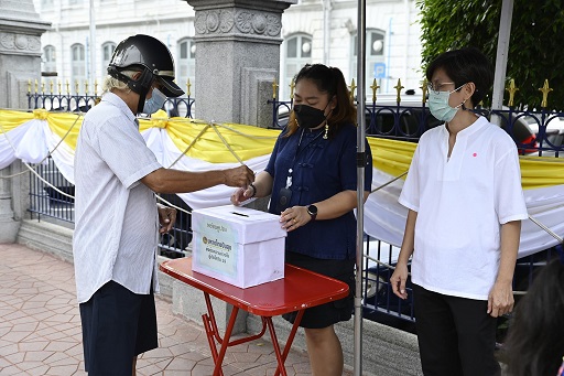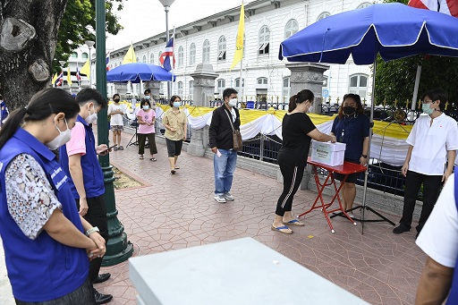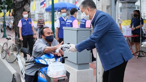 ในการนี้ กรมการปกครอง ได้จัดกำลังสมาชิกกองอาสารักษาดินแดนปฏิบัติหน้าที่อำนวยความสะดวกแก่ประชาชนและกำกับดูแลแถวให้เว้นระยะห่างทางสังคม สวมหน้ากากทุกคน ล้างมือด้วยเจลแอลกอฮอล์ และตรวจวัดอุณหภูมิก่อนรับของ เพื่อเป็นไปตามมาตรการกระทรวงสาธารณสุขกำหนดอย่างเคร่งครัด