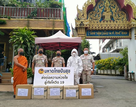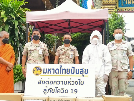 วันที่ 14 กรกฎาคม 2564 เวลา 13:30 น. นายกองเอก ธนาคม จงจิระ อธิบดีกรมการปกครอง มอบหมายให้ นายหมวดเอก ดอน จิตรวงษ์ ผช.ผบ.ร้อย.ปพ.1 บก.อส. นำกำลังสมาชิกกองอาสารักษาดินแดนเดินทางไปมอบชุด PPE จำนวน 100 ชุด ถุงมือทางการแพทย์ จำนวน 50 กล่อง หน้ากากอนามัย N95 100 ชิ้น และน้ำมันดีเซล จำนวน 200 ลิตร ให้กับวัดราษฎร์ประคองธรรม อำเภอบางใหญ่ จังหวัดนนทบุรี และ วัดสุทธาวาส เขตบุคคโล กรุงเทพมหานคร ทั้งนี้ เพื่อสนับสนุนการประกอบพิธีกรรมทางศาสนาและป้องกันการติดเชื้อจากโควิด-19