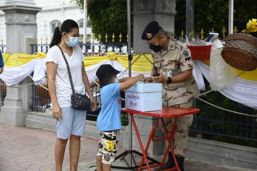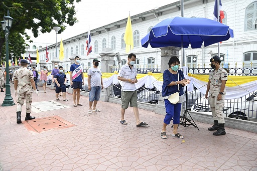 โดย กรมการปกครอง ได้จัดกำลังสมาชิกกองอาสารักษาดินแดนปฏิบัติหน้าที่อำนวยความสะดวกแก่ประชาชนและกำกับดูแลแถวตามมาตรการ “D-M-H-T-T-A ป้องกันโควิด - 19” Distancing เว้นระยะห่างทางสังคม Mask wearing สวมหน้ากาก Hand washing ล้างมือบ่อยๆ และ Testing ตรวจวัดอุณหภูมิ และ Application ติดตั้งและใช้แอปพลิเคชัน “ไทยชนะ” เพื่อเป็นไปตามมาตรการกระทรวงสาธารณสุขกำหนดอย่างเคร่งครัด