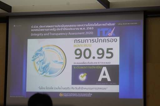 วันจันทร์ที่ 19 กรกฎาคม 2564 เวลา 09.00 น. ณ ห้องประชุมกรมการปกครอง ชั้น 2 กรมการปกครอง โดยนายธนาคม จงจิระ อธิบดีกรมการปกครอง พร้อมรองอธิบดีกรมการปกครอง และผู้บริหารกรมการปกครอง เข้ารับการตรวจประเมินรางวัลเลิศรัฐ ประจำปี 2564 รางวัลคุณภาพการบริหารจัดการภาครัฐ หมวด 1 ด้านการนำองค์กรและความรับผิดชอบต่อสังคม ณ พื้นที่ปฏิบติงาน (Site Visit) ถ่ายทอดผ่านสื่ออิเล็กทรอนิกส์ Zoom โดยคณะผู้ประเมิน ประกอบด้วย นายไมตรี อินทุสุด เป็นประธานผู้ตรวจประเมินรางวัล ฯ พร้อมนางเมธินี เทพมณี นายปวิณ ชำนิประศาสน์ และนายชัยยุทธ กมลศิริสกุล เป็นผู้ตรวจประเมินรางวัล ฯ