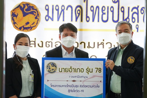 จากนั้น นายธนาคม จงจิระ อธิบดีกรมการปกครอง ได้รับมอบเงินสนับสนุนจากนักเรียนนายอำเภอรุ่นที่ 78 จำนวน 61,078 บาท และจากนักเรียนนายอำเภอรุ่นที่ 73 จำนวน 20,000 บาท เพื่อสนับสนุนร่วมกิจกรรม “มหาดไทยปันสุข ส่งต่อความห่วงใย สู้ภัยโควิด 19”ช่วยเหลือผู้ได้รับความเดือดร้อนจากโควิด-19 ต่อไป