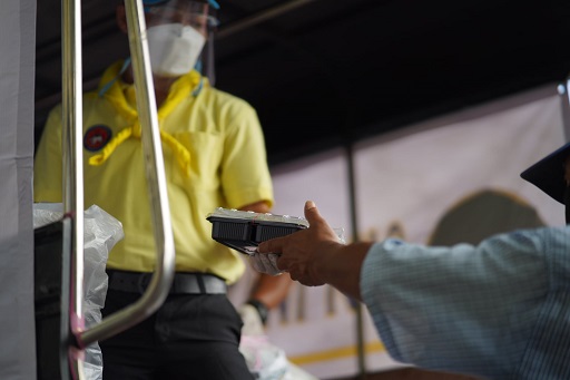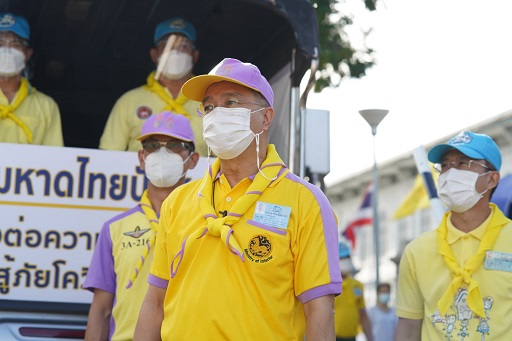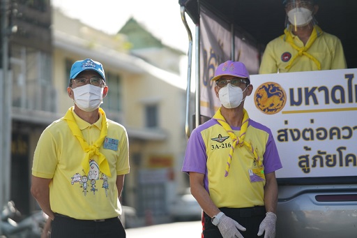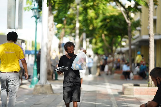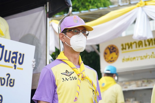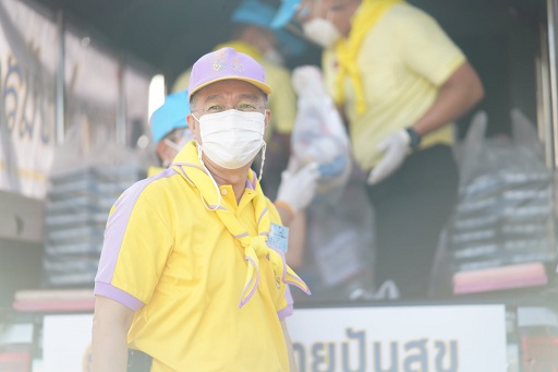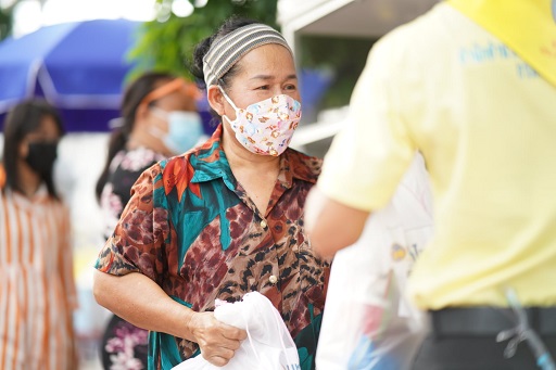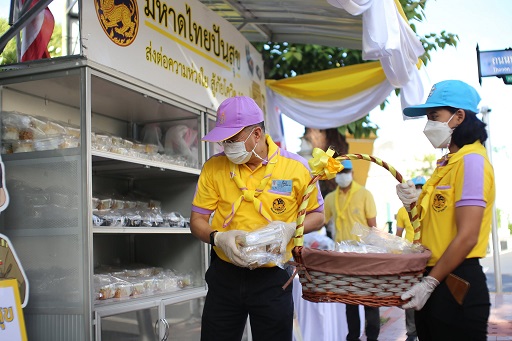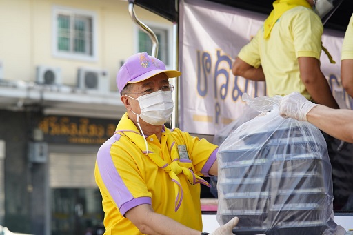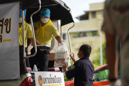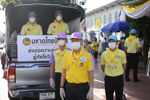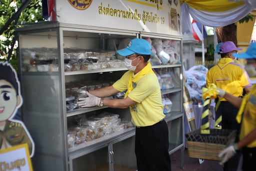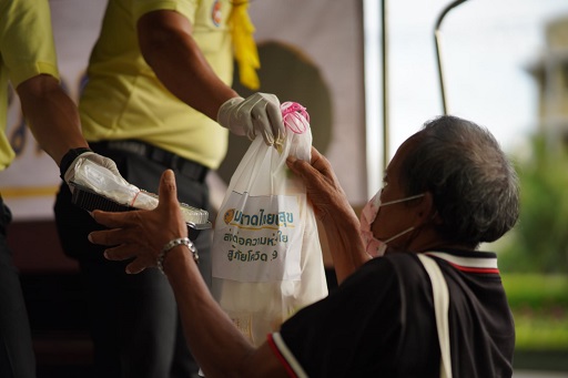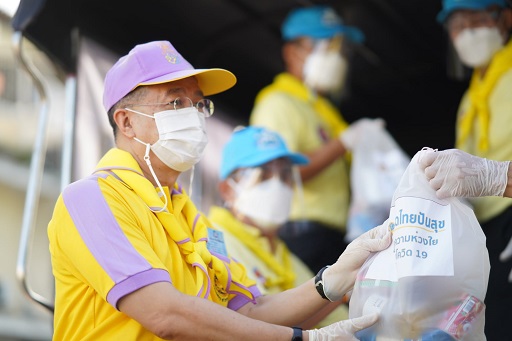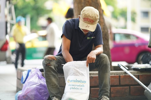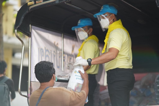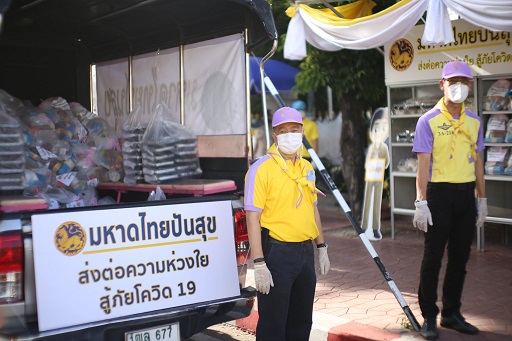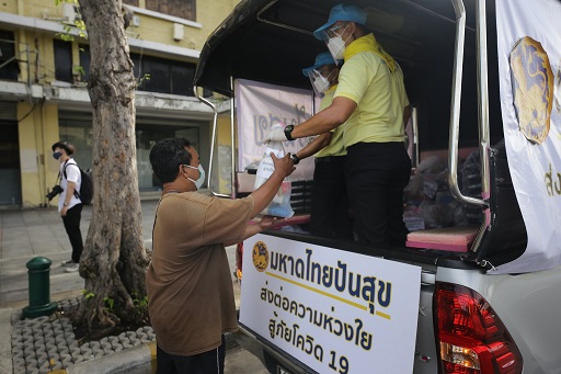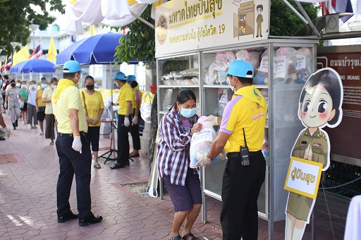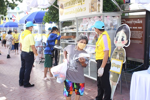 จากนั้น อธิบดีกรมการปกครอง ได้มอบหมายให้สมาชิกกองอาสารักษาดินแดน นำถุงปันสุขไปแจกจ่ายให้แก่ ผู้ยากไร้ที่ได้รับผลกระทบจากโควิด - 19 บริเวณถนนราชดำเนิน เพื่อส่งต่อความห่วงใยเป็นกำลังใจในการก้าวผ่านวิกฤตโควิด - 19