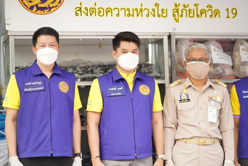 วันที่ 2 สิงหาคม 2564 เวลา 08.00 น. ณ บริเวณหน้ากระทรวงมหาดไทย นายสุชาติ ธานีรัตน์ ผู้เชี่ยวชาญเฉพาะด้านการบริหารงานทะเบียน นายสายสิทธิ์ ขุนศรี หัวหน้ากลุ่มงานประชาสัมพันธ์ พร้อมข้าราชการ และเจ้าหน้าที่ ร่วมกิจกรรม “มหาดไทยปันสุข ส่งต่อความห่วงใย สู้ภัยโควิด 19” แจกจ่ายสิ่งของเครื่องใช้ อุปโภคบริโภค พร้อมอุดหนุนอาหารพร้อมรับประทานจากร้านค้าบริเวณรอบกระทรวงมหาดไทย เพื่อแจกจ่ายให้แก่ ผู้ยากไร้ คนยากจน คนไร้ที่พึ่ง และผู้ได้รับความเดือดร้อนจากโควิด-19 กลุ่มเป้าหมายในวันนี้จากชุมชนเฟื่องทองตรอกวิสูตร