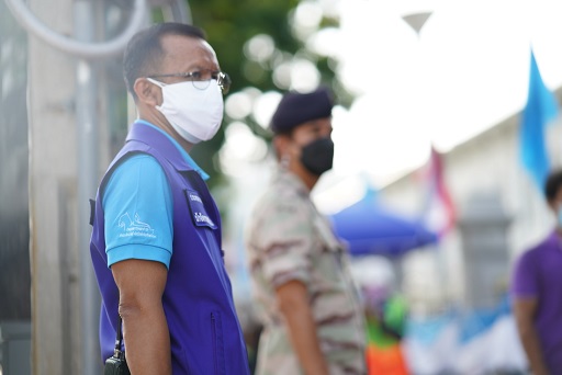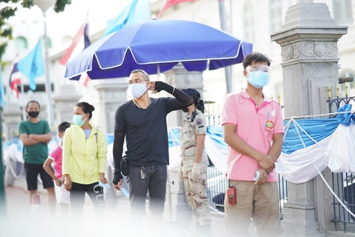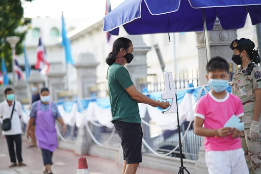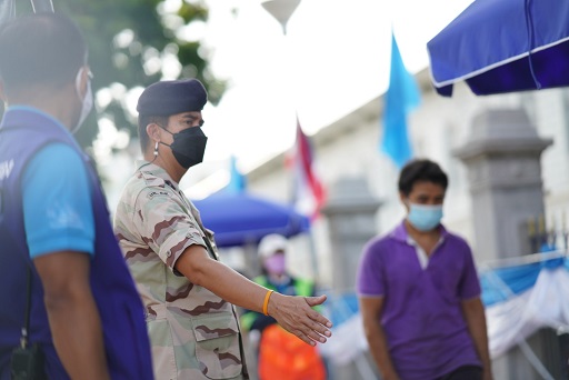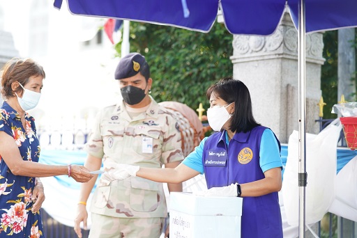 โดย กรมการปกครอง ได้จัดกำลังสมาชิกกองอาสารักษาดินแดนปฏิบัติหน้าที่อำนวยความสะดวกแก่ประชาชนและกำกับดูแลแถวตามมาตรการ “D-M-H-T-T-A ป้องกันโควิด - 19” Distancing เว้นระยะห่างทางสังคม Mask wearing สวมหน้ากาก Hand washing ล้างมือบ่อยๆ และ Testing ตรวจวัดอุณหภูมิ และ Application ติดตั้งและใช้แอปพลิเคชัน “ไทยชนะ” เพื่อเป็นไปตามมาตรการกระทรวงสาธารณสุขกำหนดอย่างเคร่งครัด