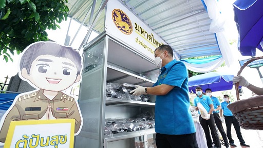 วันที่ 12 สิงหาคม 2564 เวลา 08.00 น. ณ บริเวณหน้ากระทรวงมหาดไทย นายธนาคม จงจิระ อธิบดีกรมการปกครอง ร้อยตำรวจโท ภพชนก ชลานุเคราะห์ รองอธิบดีกรมการปกครอง และนายสมยศ พุ่มน้อย รองอธิบดีกรมการปกครอง พร้อมผู้บริหาร ข้าราชการ สมาชิกกองอาสารักษาดินแดน และเจ้าหน้าที่ จัดกิจกรรมเฉลิมพระเกียรติสมเด็จพระนางเจ้าสิริกิติ์ พระบรมราชินีนาถ พระบรมราชชนนีพันปีหลวง เนื่องในโอกาสวันเฉลิมพระชนมพรรษา 12 สิงหาคม 2564 โดยการสนับสนุนเครื่องอุปโภคบริโภคเติมตู้ปันสุข “มหาดไทยปันสุข ส่งต่อความห่วงใย สู้ภัยโควิด 19” แจกจ่ายสิ่งของเครื่องใช้ อุปโภคบริโภค พร้อมอุดหนุนอาหารพร้อมรับประทานจากร้านค้าบริเวณรอบกระทรวงมหาดไทย เพื่อแจกจ่ายให้กับผู้ยากไร้ คนยากจน คนไร้ที่พึ่ง และผู้ได้รับความเดือดร้อนจากโควิด-19