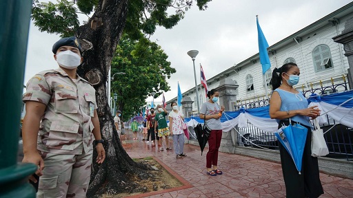 ทั้งนี้ กรมการปกครอง ได้จัดกำลังสมาชิกกองอาสารักษาดินแดนปฏิบัติหน้าที่อำนวยความสะดวกแก่ประชาชนและกำกับดูแลแถวตามมาตรการ “D-M-H-T-T-A ป้องกันโควิด - 19” Distancing เว้นระยะห่างทางสังคม Mask wearing สวมหน้ากาก Hand washing ล้างมือบ่อยๆ และ Testing ตรวจวัดอุณหภูมิ และ Application ติดตั้งและใช้แอปพลิเคชัน “ไทยชนะ” เพื่อเป็นไปตามมาตรการกระทรวงสาธารณสุขกำหนดอย่างเคร่งครัด