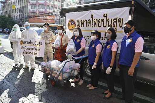 โดยมอบหมายให้ข้าราชการ เจ้าหน้าที่ พร้อมกำลังสมาชิกกองอาสารักษาดินแดน นำถุงปันสุขที่ได้รับการสนับสนุนจากหลายภาคส่วน ทั้งภาครัฐและเอกชน พร้อมอุดหนุนอาหารปรุงสุกพร้อมรับประทานจากร้านค้าบริเวณรอบกระทรวงมหาดไทย นำไปแจกจ่ายให้กับ ผู้ยากไร้ คนยากจน และคนที่ได้รับผลกระทบจากโควิด - 19 ณ ชุมชนมัสยิดบ้านตึกดิน ชุมชนมัสยิดจักรพงษ์ เขตพระนคร เพื่อแสดงความห่วงใยและเป็นกำลังใจให้ก้าวผ่านวิกฤตโควิด - 19 นี้ ไปด้วยกัน