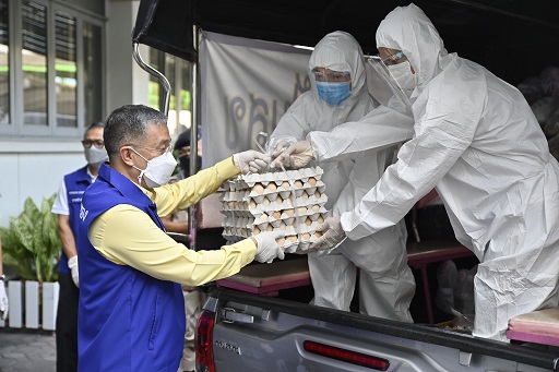 โดยมอบหมายให้ข้าราชการ เจ้าหน้าที่ พร้อมกำลังสมาชิกกองอาสารักษาดินแดน นำถุงปันสุขที่ได้รับการสนับสนุนจากหลายภาคส่วน ทั้งภาครัฐและเอกชน พร้อมอุดหนุนอาหารปรุงสุกพร้อมรับประทานจากร้านค้าบริเวณรอบกระทรวงมหาดไทย นำไปแจกจ่ายให้แก่ผู้ยากไร้ คนยากจน และคนที่ได้รับผลกระทบจากโควิด - 19 ณ ชุมชนมัสยิดอินโดนีเซีย และชุมชนซอยร่วมฤดี เขตปทุมวัน เพื่อแสดงความห่วงใยและเป็นกำลังใจให้ก้าวผ่านวิกฤตโควิด - 19 นี้ ไปด้วยกัน