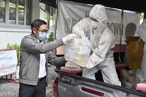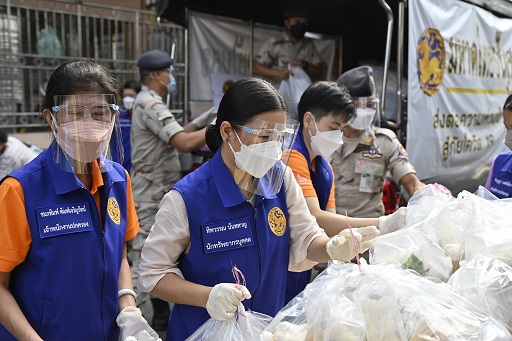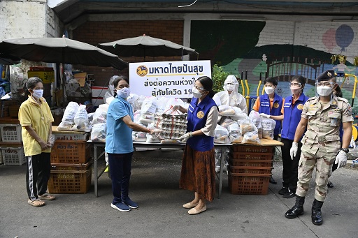 โดยมอบหมายให้ข้าราชการ เจ้าหน้าที่ พร้อมกำลังสมาชิกกองอาสารักษาดินแดน นำถุงปันสุขที่ได้รับการสนับสนุนจากหลายภาคส่วน ทั้งภาครัฐและเอกชน พร้อมอุดหนุนอาหารปรุงสุกพร้อมรับประทานจากร้านค้าบริเวณรอบกระทรวงมหาดไทย นำไปแจกจ่ายให้แก่ผู้ยากไร้ คนยากจน และคนที่ได้รับผลกระทบจากโควิด - 19 ณ ชุมชนขาวชูชีพและชุมชนวัดชัยมงคลศาลเจ้าแป๊ะกง เพื่อแสดงความห่วงใยและเป็นกำลังใจให้ก้าวผ่านวิกฤตโควิด - 19 นี้ ไปด้วยกัน