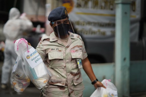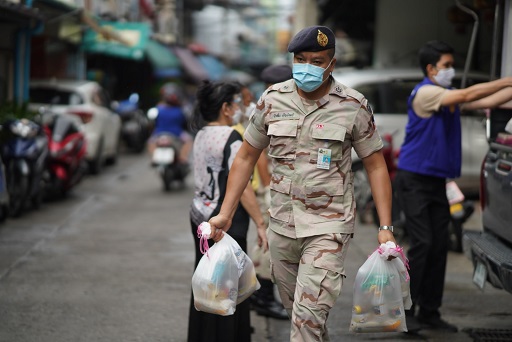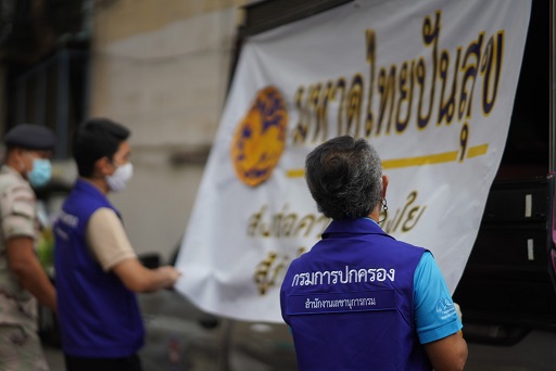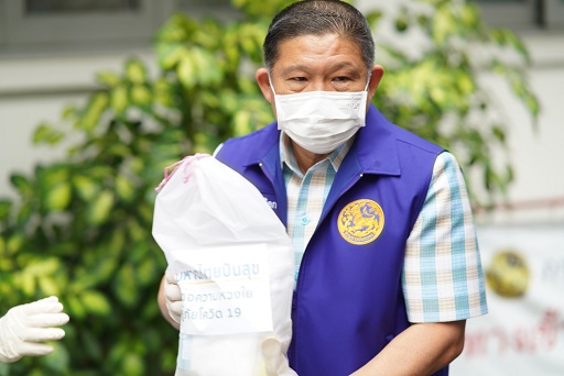 โดยมอบหมายให้ข้าราชการ เจ้าหน้าที่ พร้อมกำลังสมาชิกกองอาสารักษาดินแดน นำถุงปันสุขที่ได้รับการสนับสนุนจากหลายภาคส่วน ทั้งภาครัฐและเอกชน พร้อมอุดหนุนอาหารปรุงสุกพร้อมรับประทานจากร้านค้าบริเวณรอบกระทรวงมหาดไทย นำไปแจกจ่ายให้แก่ผู้ยากไร้ คนยากจน และคนที่ได้รับผลกระทบจากโควิด - 19 ณ ชุมชนคลองนางหงส์ และชุมชนวัดดวงแข เพื่อแสดงความห่วงใยและเป็นกำลังใจให้ก้าวผ่านวิกฤตโควิด - 19 นี้ ไปด้วยกัน