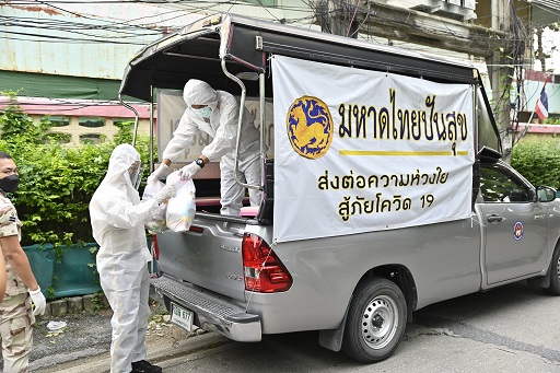 โดยมอบหมายให้ข้าราชการ เจ้าหน้าที่ พร้อมกำลังสมาชิกกองอาสารักษาดินแดน นำถุงปันสุขที่ได้รับการสนับสนุนจากหลายภาคส่วน ทั้งภาครัฐและเอกชน พร้อมอุดหนุนอาหารปรุงสุกพร้อมรับประทานจากร้านค้าบริเวณรอบกระทรวงมหาดไทย นำไปแจกจ่ายให้แก่ผู้ยากไร้ คนยากจน และคนที่ได้รับผลกระทบจากโควิด - 19 ณ ชุมชนวัดวิมุตยาราม เพื่อแสดงความห่วงใยและเป็นกำลังใจให้ก้าวผ่านวิกฤตโควิด - 19 นี้ ไปด้วยกัน