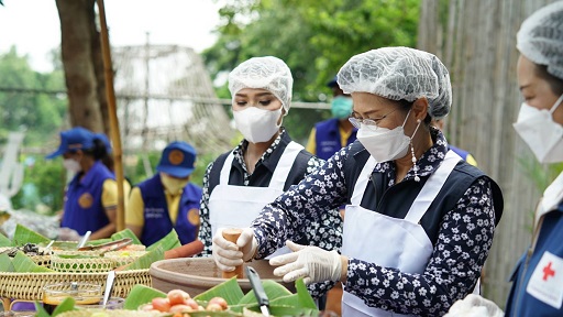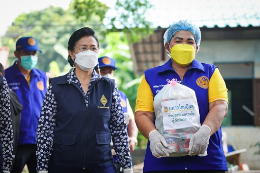 โดยร่วมกันประกอบอาหารปรุงสุกพร้อมมอบถุงปันสุขโครงการ “มหาดไทยปันสุข ส่งต่อความห่วงใย สู้ภัยโควิด-19” จากนั้น ประธานแม่บ้านกรมการปกครอง ได้นำทีมไรเดอร์กำนัน ผู้ใหญ่บ้าน ลงพื้นที่มอบสิ่งของให้กับผู้ยากไร้ คนยากจน และคนที่ได้รับผลกระทบจากโควิด - 19 ในหลายครัวเรือน เพื่อแสดงความห่วงใยและเป็นกำลังใจให้ก้าวผ่านวิกฤตโควิด - 19 นี้ ไปด้วยกัน