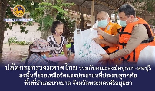 ปลัดกระทรวงมหาดไทยร่วมกับคณะสงฆ์อยุธยา-ลพบุรี ลงพื้นที่ช่วยเหลือวัดและประชาชนที่ประสบอุทกภัยพื้นที่อำเภอบางบาล จังหวัดพระนครศรีอยุธยา