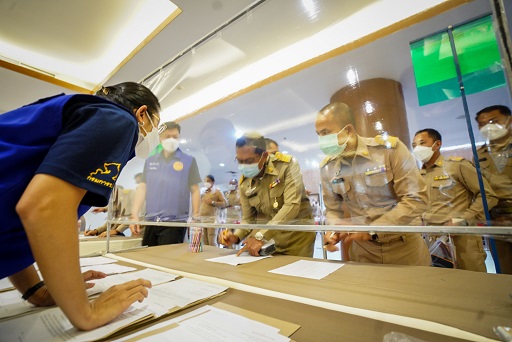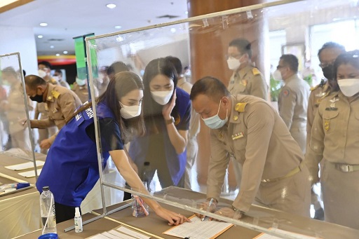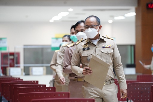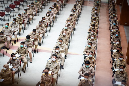 ภาพบรรยากาศกรมการปกครอง จัดสอบสัมภาษณ์ข้าราชการในสังกัด เพื่อเข้ารับการฝึกอบรมหลักสูตร "นายอำเภอ" ประจำปี 2564 โดยปฏิบัติตามมาตรการป้องกัน COVID-19 อย่างเคร่งครัด