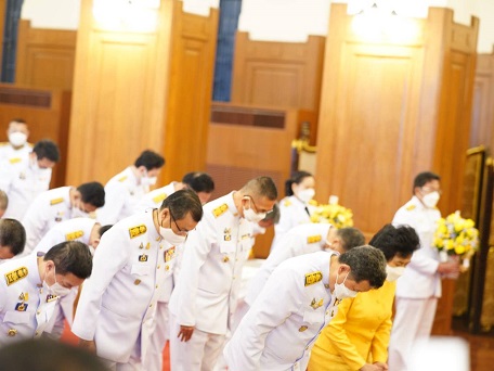 วันที่ 1 มกราคม 2565 ณ ศาลาสหทัยสมาคม พระบรมมหาราชวัง นายสุทธิพงษ์ จุลเจริญ ปลัดกระทรวงมหาดไทย นายธนาคม จงจิระ อธิบดีกรมการปกครอง พร้อมด้วยรองปลัดกระทรวงมหาดไทย อธิบดีกรมในสังกัดกระทรวงมหาดไทย และหัวหน้าหน่วยงานรัฐวิสาหกิจในสังกัดกระทรวงมหาดไทย ร่วมถวายแจกันดอกไม้หน้าพระบรมฉายาลักษณ์พระบาทสมเด็จพระเจ้าอยู่หัว และสมเด็จพระนางเจ้าฯ พระบรมราชินี และลงนามถวายพระพรเนื่องในโอกาสวันขึ้นปีใหม่ พ.ศ. 2565
