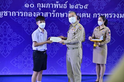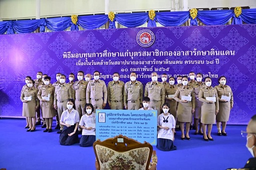 จากนั้น นายกองเอก ธนาคม จงจิระ ในฐานะประธานกรรมการมูลนิธิอาสารักษาดินแดน ในพระบรมราชินูปถัมภ์ ได้รับมอบเงินสนับสนุนกิจการมูลนิธิอาสารักษาดินแดนฯ และได้มอบทุนการศึกษาให้แก่บุตรสมาชิกกองอาสารักษาดินแดน เพื่อเป็นการเสริมสร้างขวัญกำลังใจในการปฏิบัติหน้าที่ของสมาชิกกองอาสารักษาดินแดนต่อไป