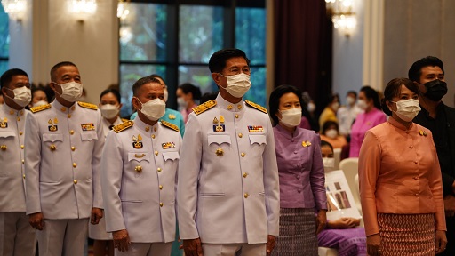 วันที่ 13 ก.พ. 2565 เวลา 10.00 น. ที่โรงแรม ดิ แอทธินี โฮเต็ล อะ ลักชัวรี โฮเต็ล แบ็งค็อก กรุงเทพมหานคร นายสุทธิพงษ์ จุลเจริญ ปลัดกระทรวงมหาดไทย พร้อมด้วย ดร.วันดี กุญชรยาคง จุลเจริญ ประธานสภาสตรีแห่งชาติ ในพระบรมราชินูปถัมภ์ และนายกสมาคมแม่บ้านมหาดไทย เป็นประธานพิธีมอบแบบลายผ้าขิดพระราชทาน “ผ้าขิดลายนารีรัตนราชกัญญา” ให้กับผู้ว่าราชการจังหวัด และประธานแม่บ้านมหาดไทยจังหวัด ทุกจังหวัดทั่วประเทศ โดยมี รองปลัดกระทรวงมหาดไทย ผู้บริหารระดับสูง พร้อมด้วย หน่วยงานรัฐวิสาหกิจในสังกัดกระทรวงมหาดไทย ในการนี้ ร้อยตำรวจโทภพชนก ชลานุเคราะห์ รองอธิบดีกรมการปกครอง ร่วมในพิธี