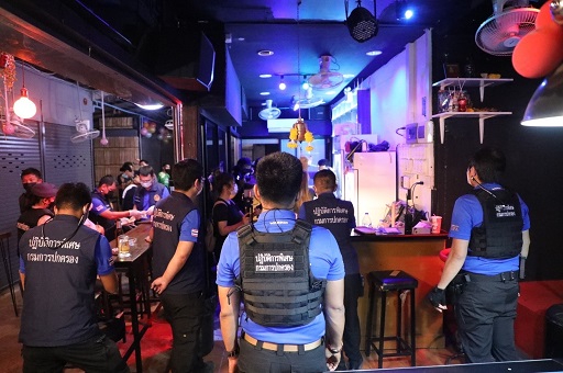 วันที่ 15 มี.ค. 2565 เวลา 21.00 น. เมื่อพนักงานฝ่ายปกครอง รวบรวมพยานได้ชัดเจนแล้ว ปฏิบัติการจับกุมจึงเริ่มขึ้น ขณะเข้าจับกุม พบร้านเป้าหมายและบริเวณโดยรอบ กว่า 30 ร้าน ล้วนมีลักษณะเป็นผับ บาร์ กำลังเปิดเพลง ดื่มกินอย่างสนุกสนาน เมื่อเห็นเจ้าพนักงานเข้ามาตรวจสอบต่างพากันทยอยปิดร้านกันอย่างรวดเร็ว