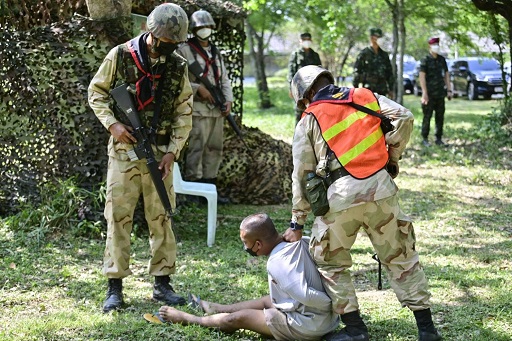 วันที่ 17 มีนาคม 2565 เวลา 09.30 น. ณ พื้นที่ฝึกภาคสนาม โรงเรียนการกำลังสำรอง ศูนย์การกำลังสำรอง ค่ายธนะรัชต์ อำเภอปราณบุรี จังหวัดประจวบคีรีขันธ์ นายกองเอก ธนาคม จงจิระ หัวหน้าฝ่ายอำนวยการกองบัญชาการกองอาสารักษาดินแดน/อธิบดีกรมการปกครอง พร้อมผู้บริหารส่วนกลาง เดินทางมาตรวจเยี่ยมการฝึกภาคสนาม หลักสูตร “จัดตั้งและทดแทนสมาชิกกองอาสารักษาดินแดน รุ่นที่ 35 ประจำปีงบประมาณ 2565 จำนวน 130 คน