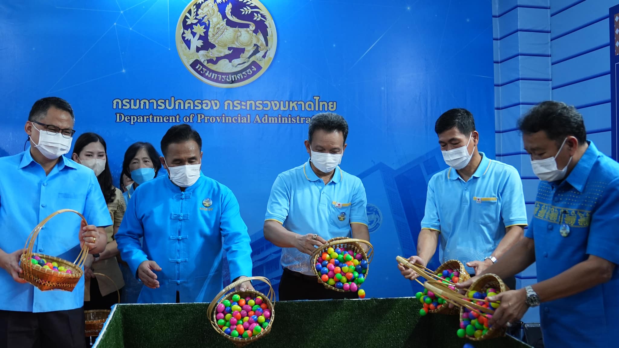 งานกาชาดประจำปี 2565 ปีนี้จัดที่ สวนลุมพินี 11 วัน 11 คืน เริ่มตั้งแต่วันที่ 8 - 18 ธันวาคม 2565 สำหรับบรรยากาศวันแรกของร้านกาชาดกรมการปกครอง ประชาชนต่างหลั่งไหลเข้ามาอุดหนุนลุ้นโชคตักไข่อย่างล้นหลาม และร่วมกิจกรรมตอบคำถามลุ้นรางวัลอย่างมากมาย โดยมีนายแมนรัตน์ รัตนสุคนธ์ อธิบดีกรมการปกครอง นางวรสุดา รัตนสุคนธ์ ประธานแม่บ้านกรมการปกครอง พร้อมด้วยผู้บริหารกรมการปกครอง ร่วมต้อนรับประชาชนที่เข้ามาเยี่ยมชม และอุดหนุนลุ้นโชคตักไข่ของร้านกาชาดกรมการปกครอง
