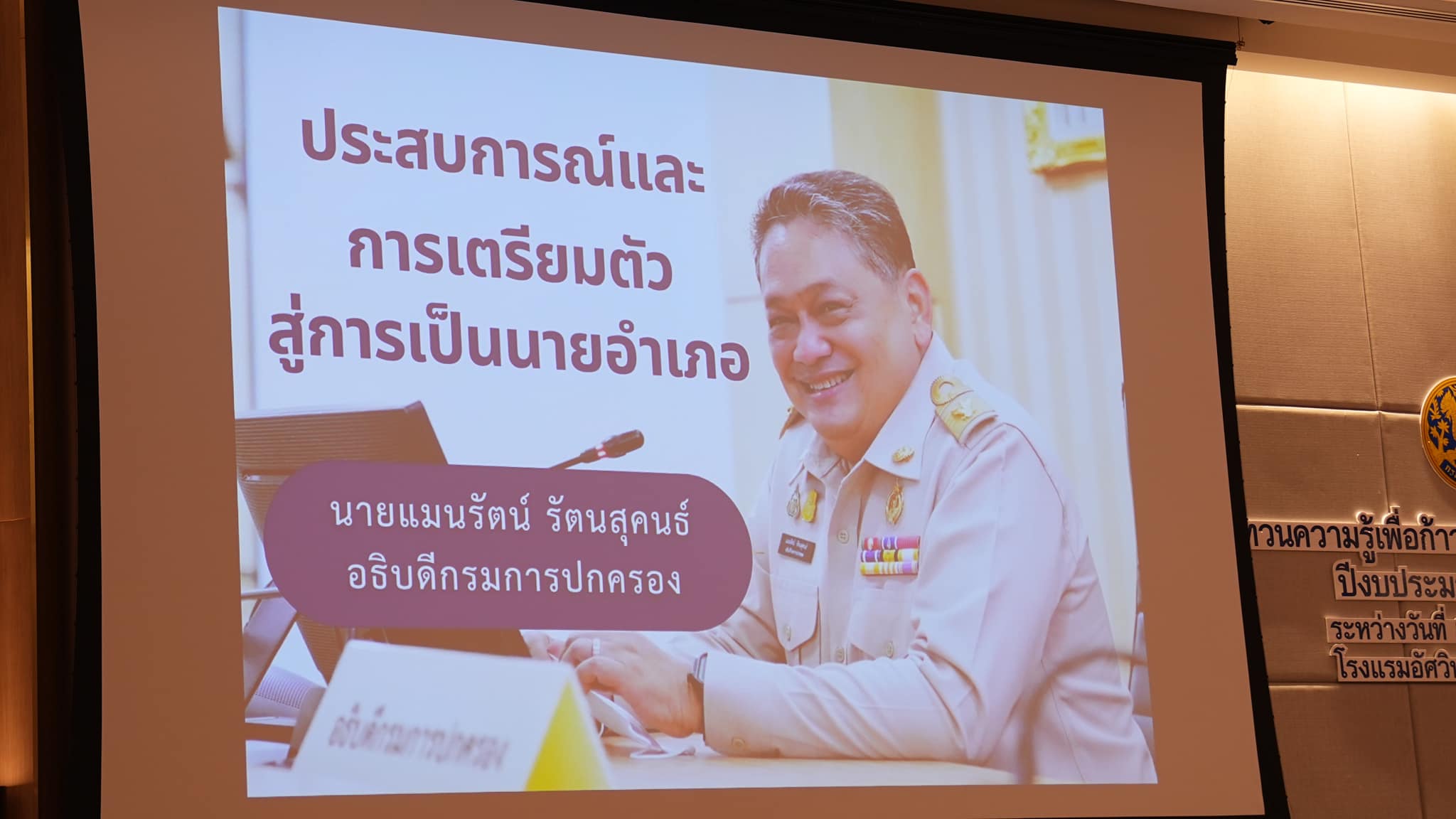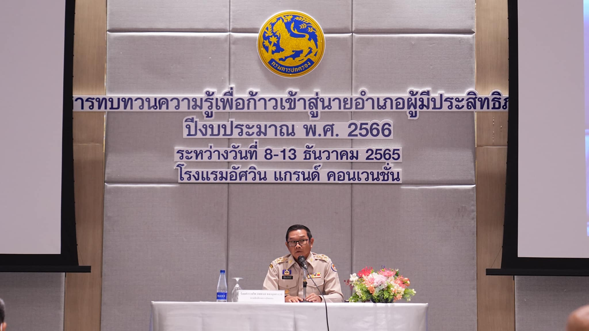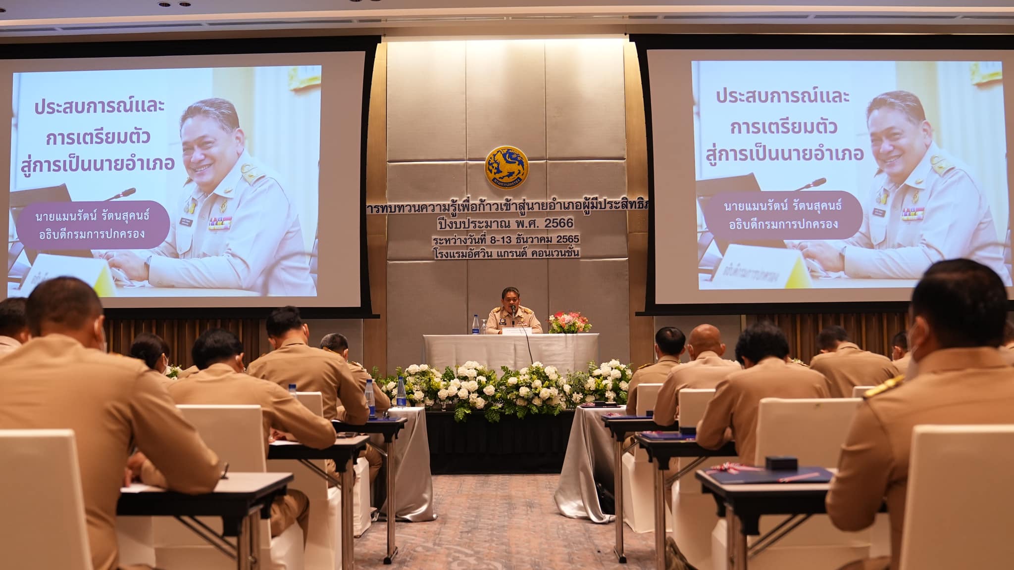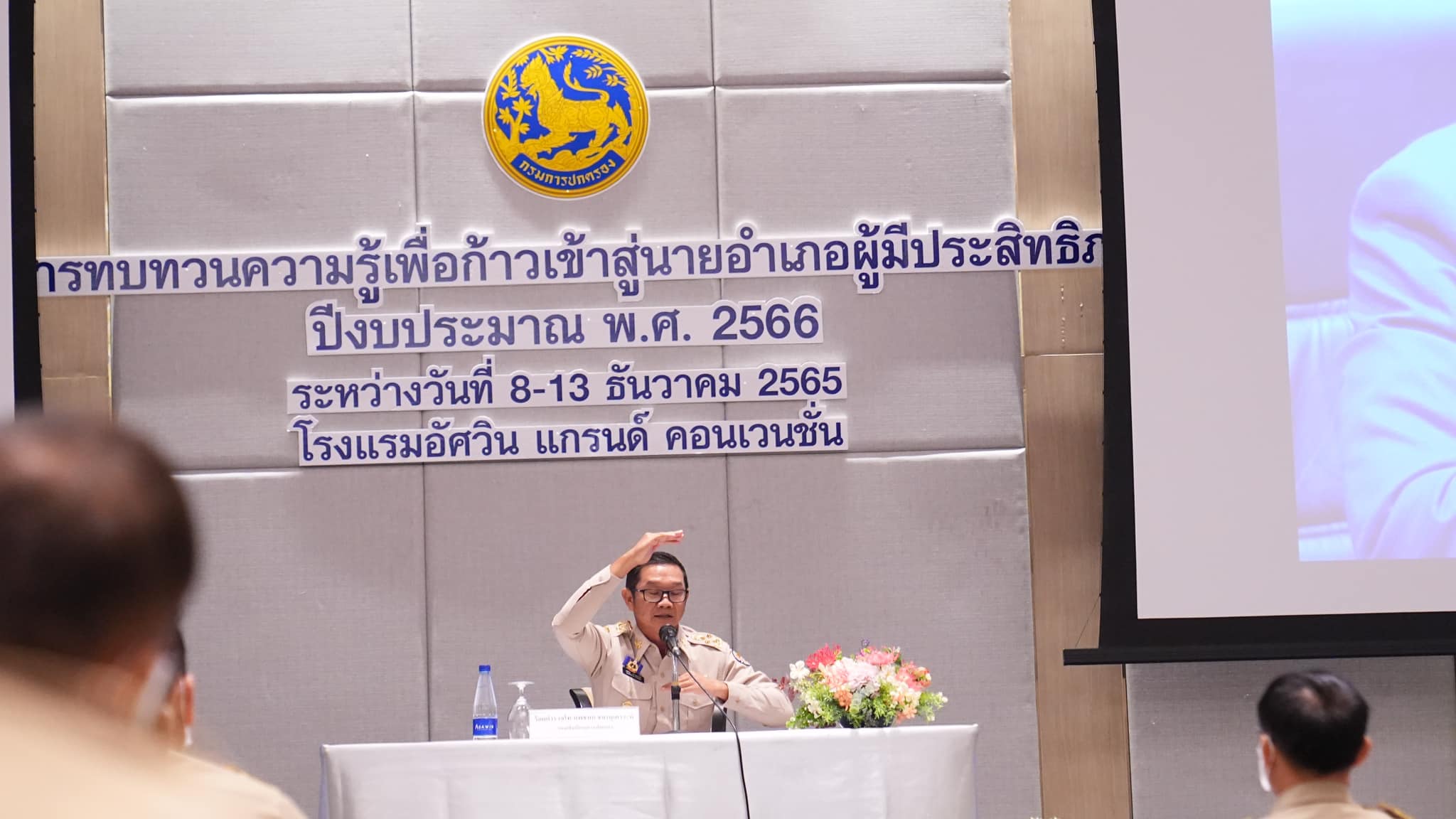 อธิบดีกรมการปกครอง บรรยายพิเศษ “ประสบการณ์และการเตรียมตัวสู่การเป็นนายอำเภอ” ให้แก่ผู้อบรมโครงการทบทวนความรู้เพื่อก้าวเข้าสู่นายอำเภอผู้มีประสิทธิภาพสูง ปีงบประมาณ พ.ศ.2566