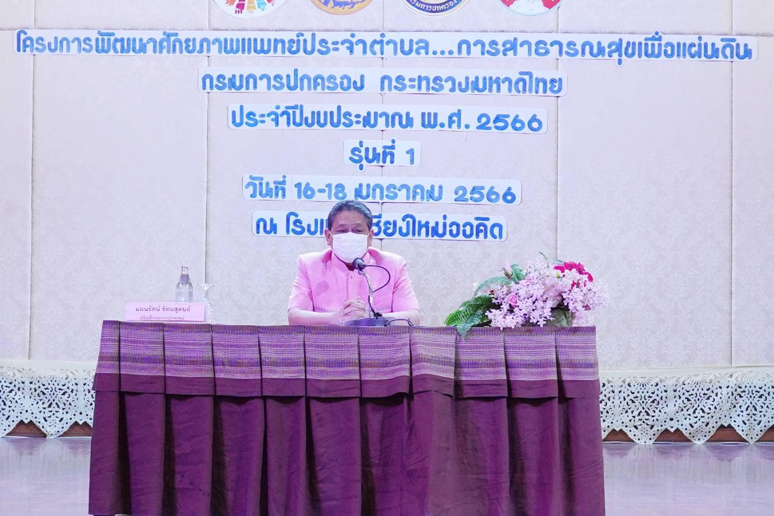 วันอังคารที่ 17 มกราคม พ.ศ. 2566 เวลา 13.00 น. ณ โรงแรมเชียงใหม่ออคิด อำเภอเมืองเชียงใหม่ นายแมนรัตน์ รัตนสุคนธ์ อธิบดีกรมการปกครองเป็นประธานเปิดโครงการ "พัฒนาศักยภาพแพทย์ประจำตำบล...การสาธารณสุขเพื่อแผ่นดิน" ประจำปีงบประมาณ พ.ศ. 2566 (รุ่นที่ 1) โดยมีกลุ่มเป้าหมายเป็นแพทย์ประจำตำบล ภาคเหนือ จำนวน 17 จังหวัด 196 คน โดยมี นายบุญลือ ธรรมธรานุรักษ์ ผู้อำนวยการสำนักบริหารการปกครองท้องที่ กล่าวรายงานโครงการฯ