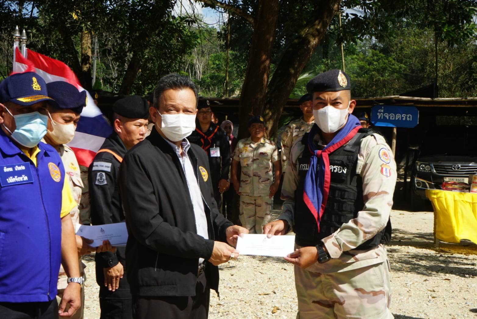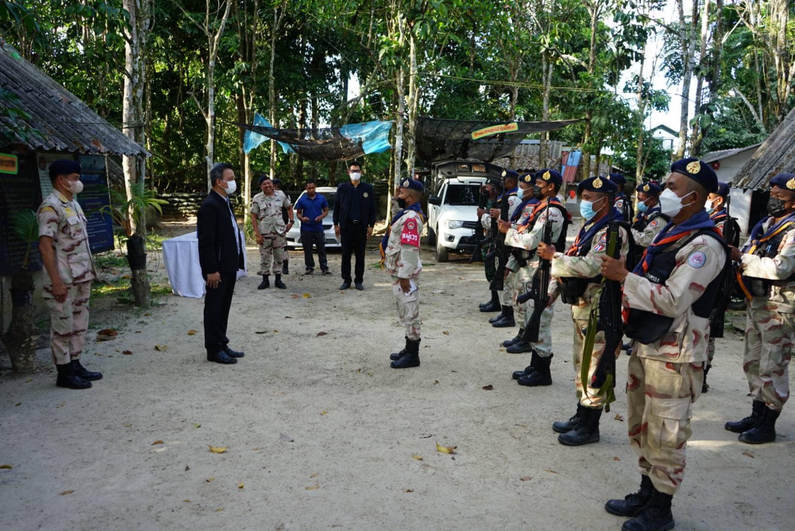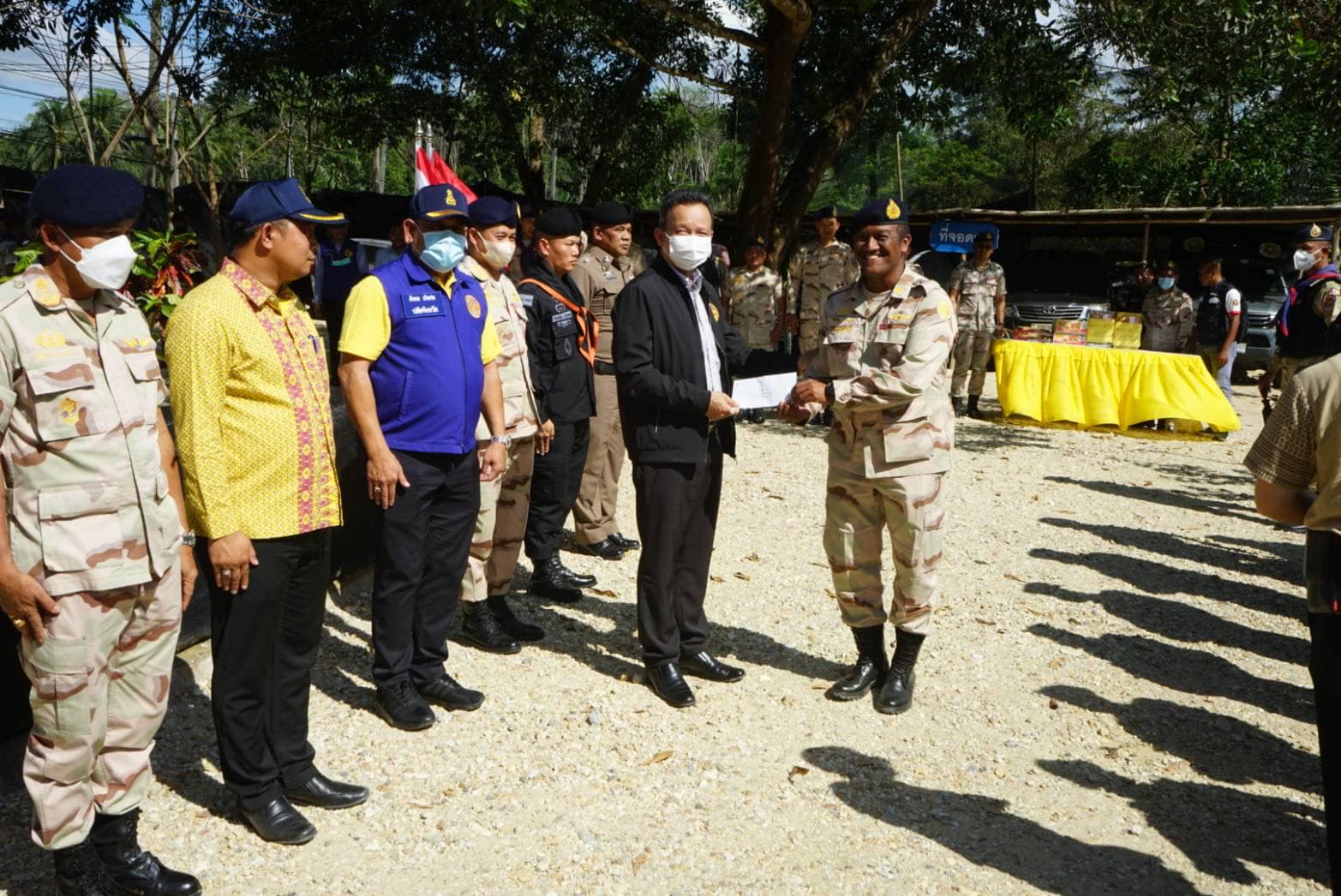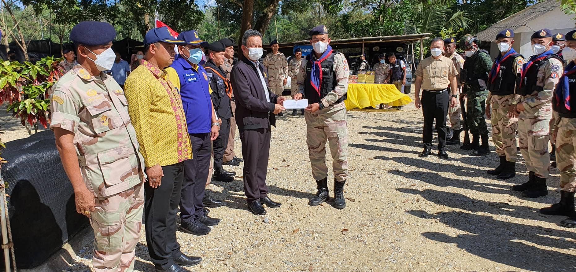 วันที่ 14 กุมภาพันธ์ 2566 เวลา 13.00-16.30 น. นายกองเอกแมนรัตน์ รัตนสุคนธ์ อธิบดีกรมการปกครอง/ หัวหน้าฝ่ายอำนวยการ กองบัญชาการกองอาสารักษาดินแดน มอบหมายให้นายกองเอกสมศักดิ์ เจริญไพฑูรย์ รองอธิบดีกรมการปกครอง/ รองหัวหน้าฝ่ายอำนวยการ กองบัญชาการกองอาสารักษาดินแดน ลงพื้นที่มอบเงินช่วยเหลือจากมูลนิธิอาสารักษาดินแดนในพระบรมราชินูปถัมภ์ พร้อมมอบกระเช้าปลอบขวัญและตรวจเยี่ยมให้กำลังใจสมาชิกกองอาสารักษาดินแดนชุดคุ้มครองตำบลสาวอ อำเภอรือเสาะ จังหวัดนราธิวาส ที่ได้รับบาดเจ็บจากเหตุการณ์ความไม่สงบในพื้นที่จังหวัดชายแดนภาคใต้