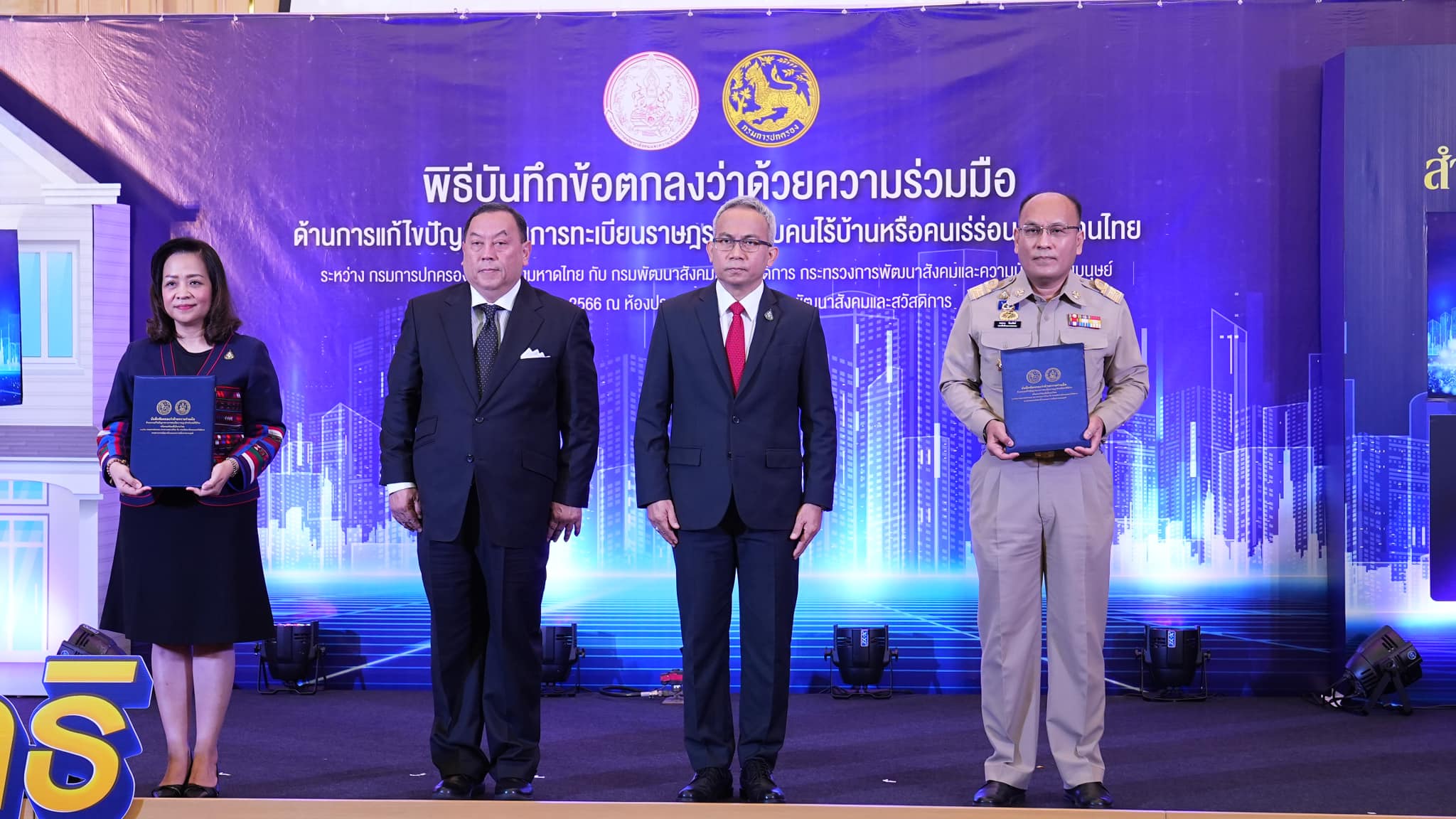 “ปค. ร่วมกับ พม. ลงนาม MOU แก้ไขปัญหาทางการทะเบียนราษฎรสำหรับคนไร้บ้าน หรือคนเร่ร่อนที่เป็นคนไทย ภายใต้แนวคิด ”คนไทยไม่ไร้สิทธิ”