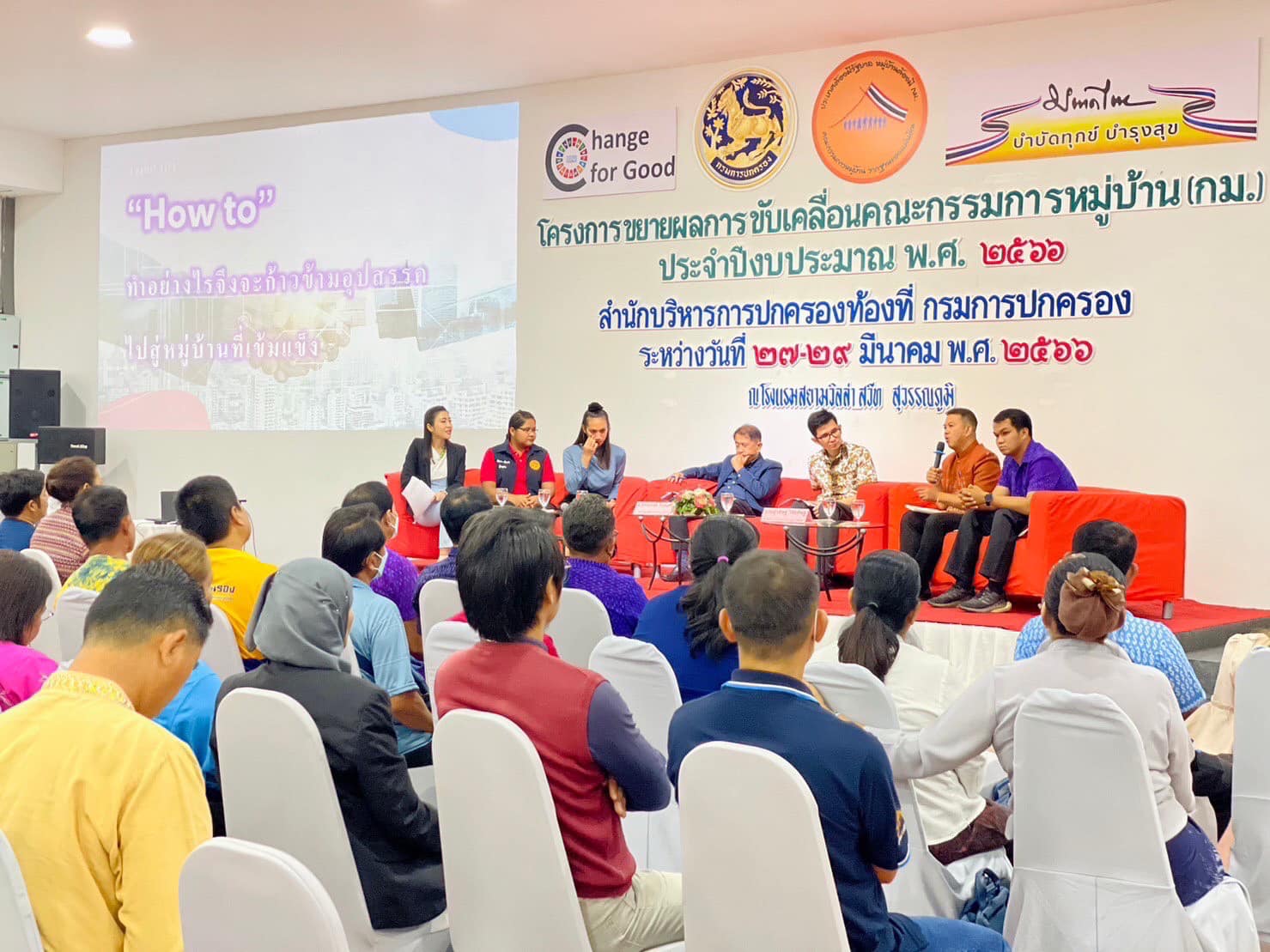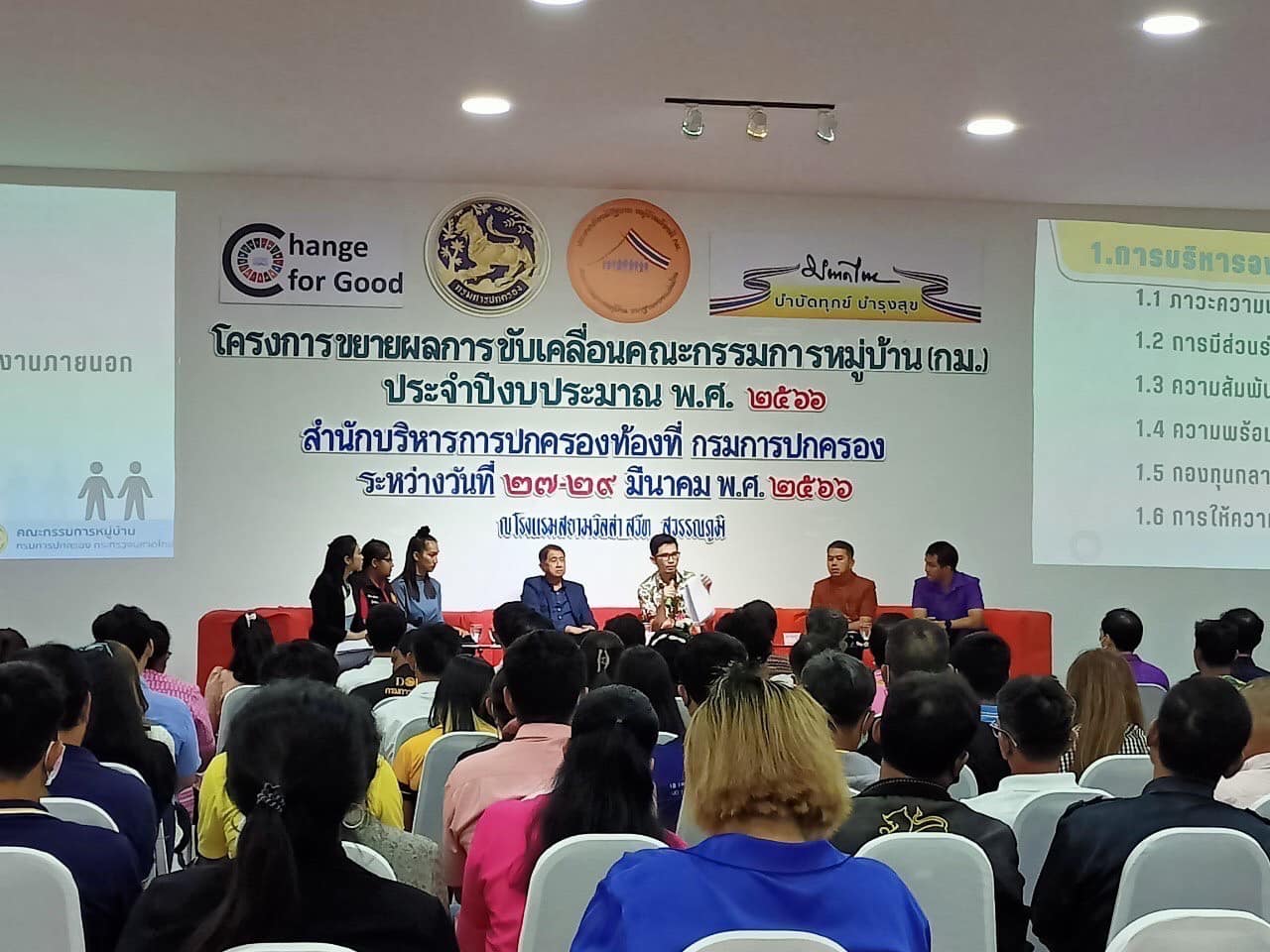 ทั้งนี้ กรมการปกครองได้สร้างเวทีแห่งการพบปะ พูดคุย แลกเปลี่ยน ผ่านการอบรมตามโครงการขยายผลการขับเคลื่อนคณะกรรมการหมู่บ้าน (กม.) ประจำปีงบประมาณ พ.ศ. 2566 ถือได้ว่าเป็นโอกาสดีที่หมู่บ้านที่กำลังเริ่มสร้างผลงานจะได้เรียนรู้ผ่านการถอดบทเรียนจากหมู่บ้านที่มีผลการดำเนินงานโดดเด่นเพื่อยกระดับการบริหารการพัฒนาหมู่บ้าน ได้สร้างภาคีเครือข่าย ในการแลกเปลี่ยนเรียนรู้ เสริมสร้างบทบาทของคณะกรรมการหมู่บ้าน สร้างทีมหมู่บ้านให้มีความเข้มแข็งที่มีแรงปรารถนาที่จะทำประโยชน์ให้ส่วนรวมโดยสิ่งสำคัญคือ ต้องมีใจและมีอุดมการณ์.(Passion) ความรู้ (Knowledge) และความสามารถ (Ability) เพื่อร่วมกันเปลี่ยนแปลงไปสู่สิ่งที่ดีกว่า เพื่อพัฒนาหมู่บ้านไปสู่ความยั่งยืน